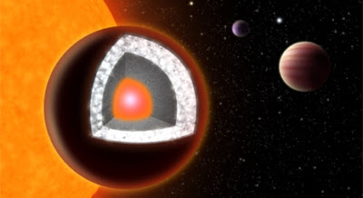 Astrônomos descobriram um planeta duas vezes maior do que a Terra, composto na maior parte de diamante, orbitando uma estrela que é visível a olho nu.